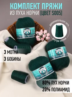 Пряжа пух норки зеленый, 3 шт по 50 гр 350 м