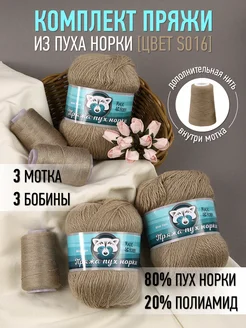 Пряжа пух норки 3 шт по 50 гр 350 м