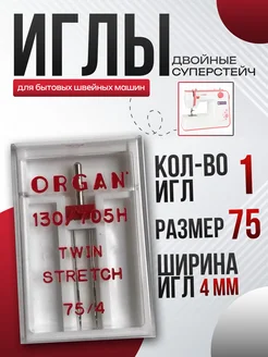 1шт Двойная игла Twin SuperStretch №75 4мм швейных машин