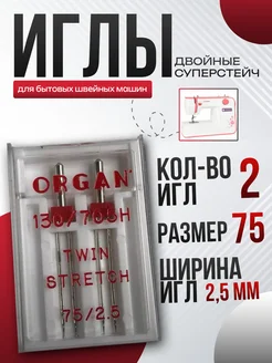 2шт Двойные иглы Twin SuperStretch №75 2,5мм швейных машин