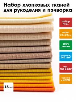 Набор хлопковых тканей для рукоделия и пэчворка 15 шт. № 1