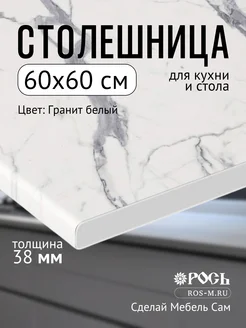 Столешница для кухни и стола 60x60x3.8 см, Белый гранит