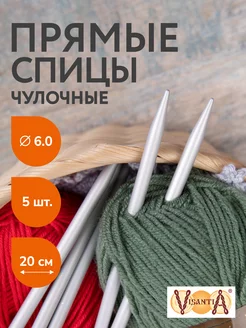 Спицы для вязания для носков, алюминий, Ø 6.0 мм, 20 см,5 шт