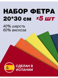 Фетр декоративный 20х30 см набор 5шт
