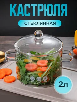 Кастрюля 2 л стеклянная термостойкая с крышкой