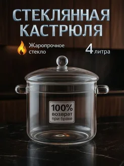 Кастрюля 4 л стеклянная термостойкая с крышкой