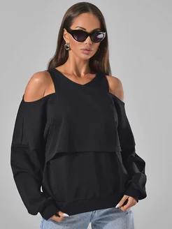 Свитшот утепленный кофта с начесом со вставками из сетки