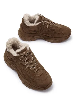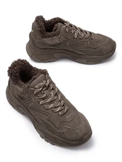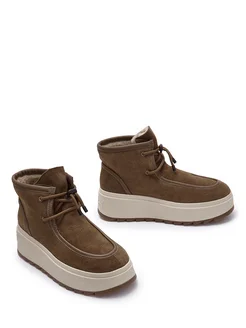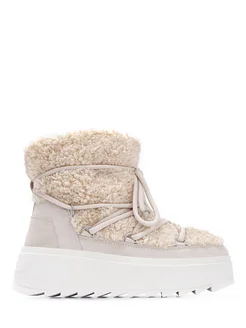 Полусапожки меховые коричневые бежевые на высокой подошве