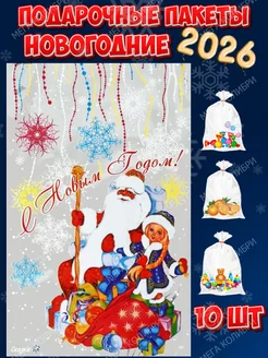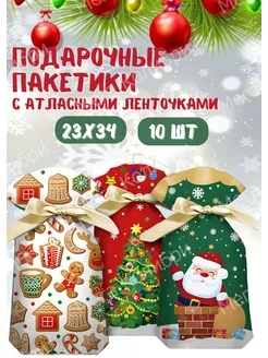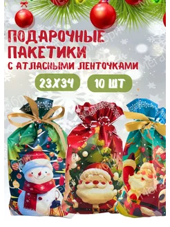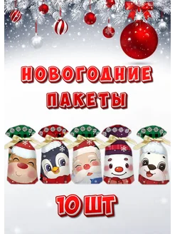 Пакеты новогодние подарочные с завязками набор 10 шт