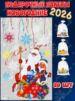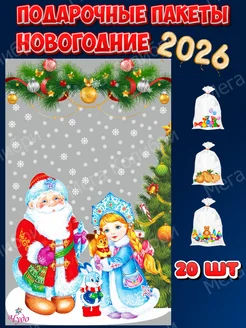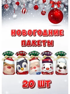 Пакеты новогодние подарочные маленькие с завязками 20 шт