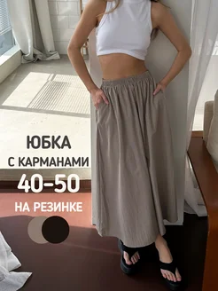 Юбка миди длинная на резинке с карманами Y2K