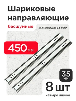 Шариковые направляющие для ящиков 450мм 8шт Полозья 45см