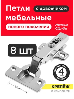 Петли мебельные накладные с доводчиком для кухни в шкаф 8 шт