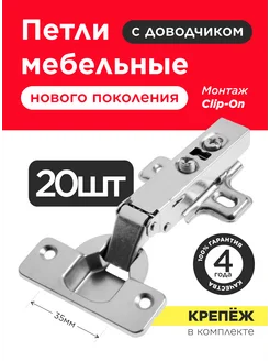 Петли мебельные накладные с доводчиком для кухни в шкаф 20шт