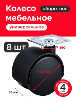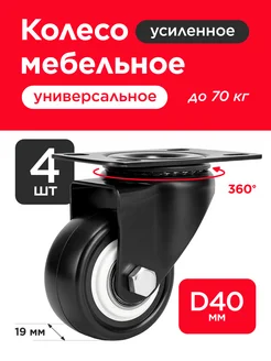 Колесо мебельное усиленное до 70кг D40 мм поворотное 4 шт