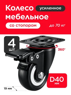Колесо мебельное усиленное с тормозом D40 мм поворотное 4 шт
