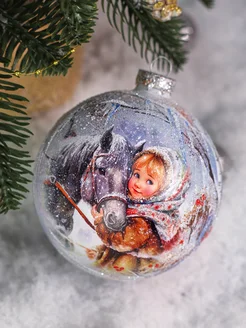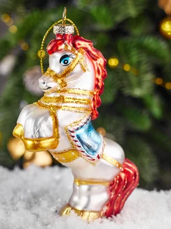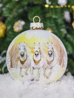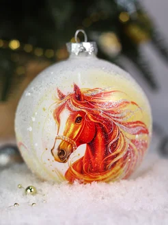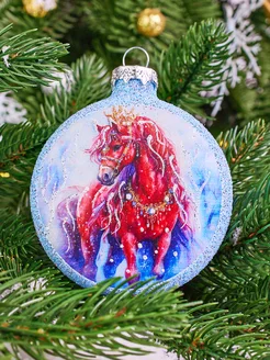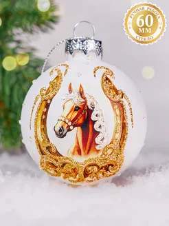 Стеклянная елочная игрушка шар Лошадка 60мм