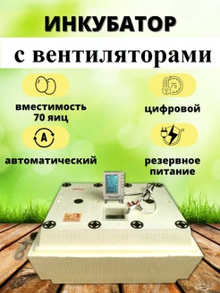 Инкубатор на 70 яиц автоматический с вентилятором 220 и 12В