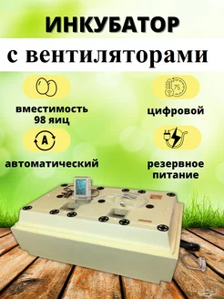 Инкубатор на 98 яиц автоматический с вентилятором 220 и 12В