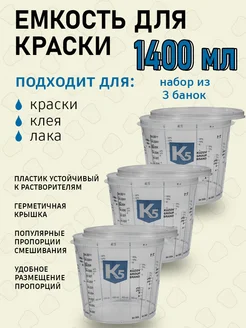 Емкость для смешивания краски 1400мл мерная, 3шт