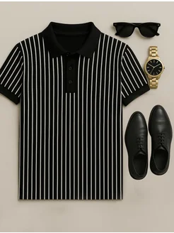 Футболка поло в полоску с коротким рукавом