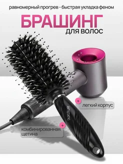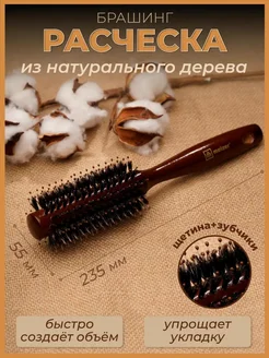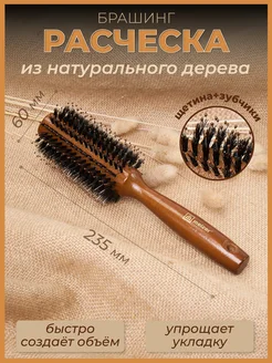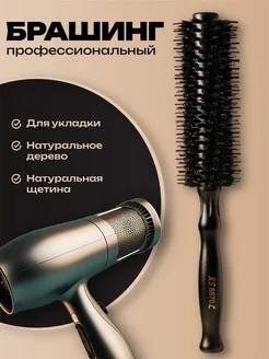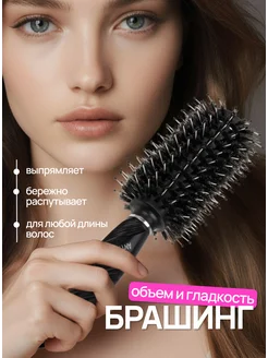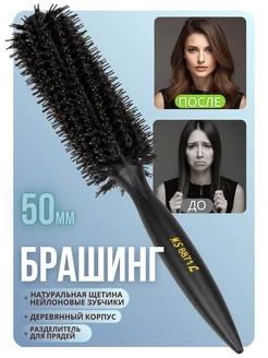 Брашинг для волос с натуральной щетиной расческа круглая фен