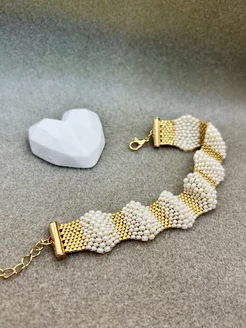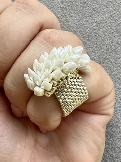 Кольцо из японского бисера и жемчуга Майорка волнистое