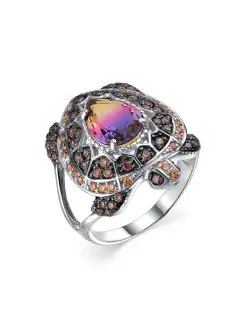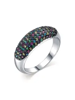 Широкое серебряное кольцо с разноцветными камнями