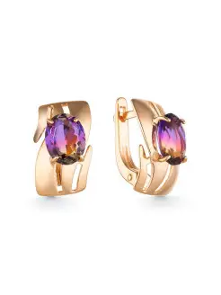Позолоченные серьги геометрия с крупными камнями