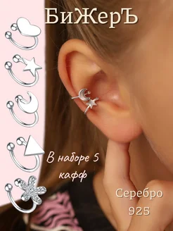 Детские серебряные серьги каффы без прокола набор