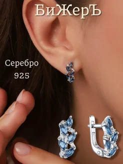 Уникальные серебряные серьги с синими камнями Листья