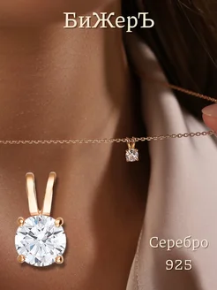 Позолоченная классическая подвеска на шею капелька с камнем