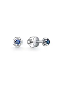Серьги пусеты серебро 925 пробы с натуральным сапфиром