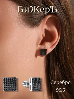 Квадратные серебряные серьги пусеты с камнями Геометрия