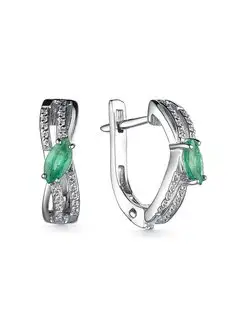 Серебряные серьги дорожки с натуральным изумрудом