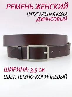 Ремень для джинс брюк коричневый кожаный 3,5 см