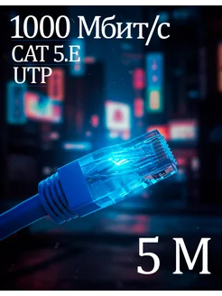 Интернет кабель 5м, коннектор rj45, cat5.e, UTP патчкорд