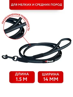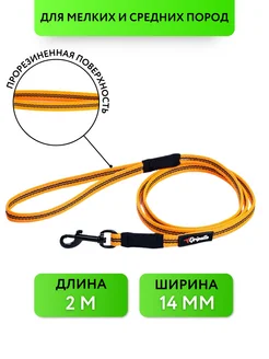 Поводок нейлоновый прорезиненный, ширина 14 мм, длина 2 м