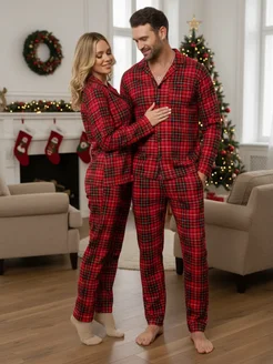 Пижама со штанами клетчатая семейная хлопок Family Look