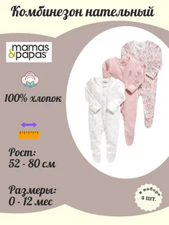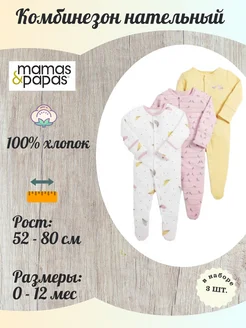 Комбинезон нательный (слип, пижама) Papas&Mamas, 3 шт