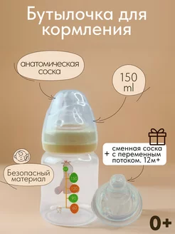 Бутылочка для кормления 150 мл + соска 12+ 1 шт