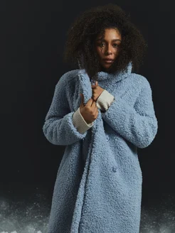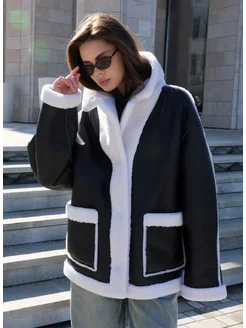 Шуба искусственная на основе овечьей шерсти теплая пальто