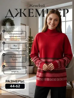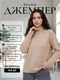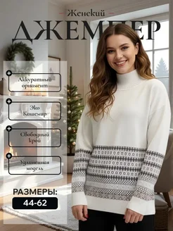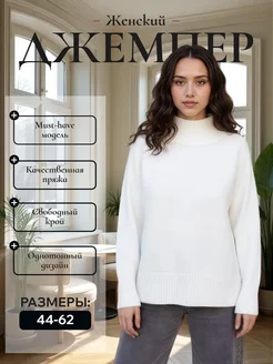 Джемпер теплый шерстяной с горлом большие размеры