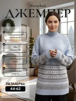 Джемпер удлиненный новогодний с узором нарядный