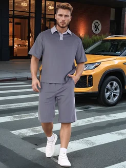 Костюм с шортами и футболкой поло, большие размеры