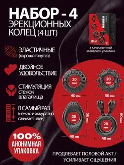 Набор эрекционных колец силиконовых 4 шт, насадка на член