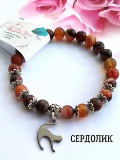 Браслет из камня с подвеской "Кошка"