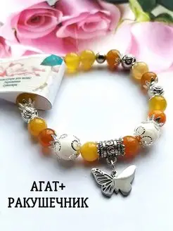 Браслет из агата с подвеской. Натуральные камни