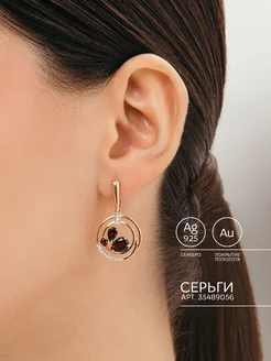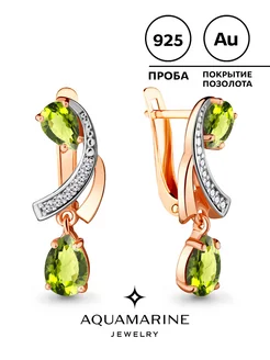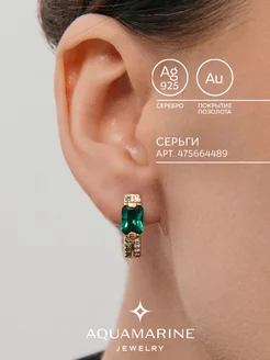 Серьги серебро с изумрудами 925 пробы позолоченные