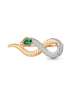 Брошь Змея серебро 925 позолоченная с изумрудом Символ года